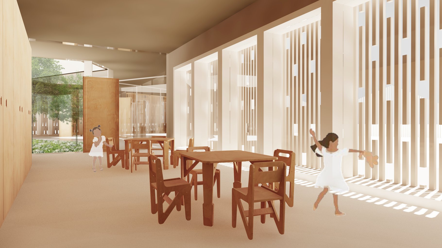 Cílem návrhu nebylo pouze vytvořit funkční vzdělávací instituci, ale především prostředí, které podněcuje dětskou zvídavost, tvořivost a přirozený pohyb. Mateřská škola v Kuklenách je navržena jako místo, kde děti mohou bezpečně růst, objevovat svět kolem sebe a vytvářet první přátelství.