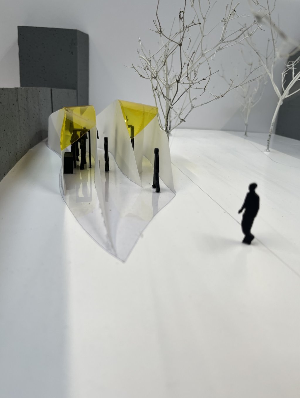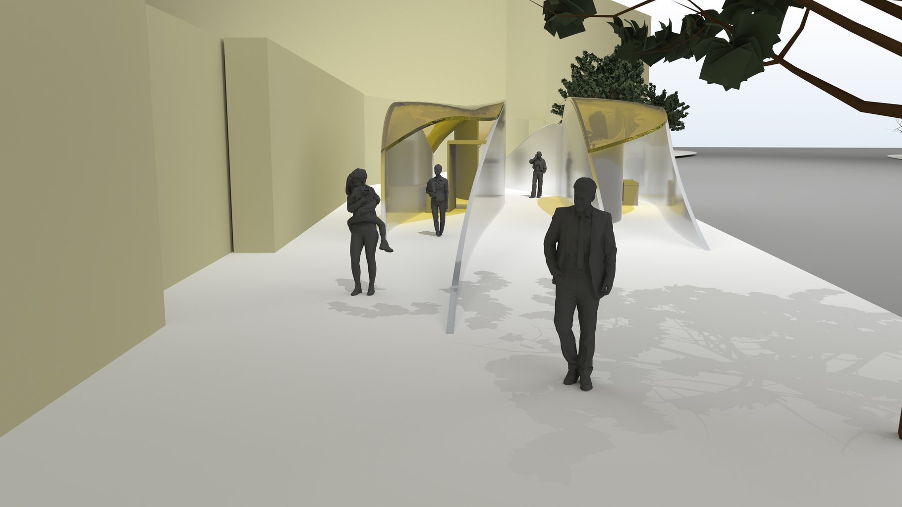 Je lepší podstoupit stresující kontrolu, nebo se projít příjemným prostorovým zážitkem? Tento návrh reaguje na situaci nepříjemné kontroly tím, že ji proměňuje v otevřený a působivý průchod. Cílem je nabídnout možnost, která bude návštěvníky Pražského hradu přitahovat svým vzhledem. Záměrem je, aby organicky tvarovaný objekt působil lehce, a to díky plynule stoupajícím liniím. Zároveň využívá poloprůhledné materiály, jež propouštějí světlo a navozují pocit vzdušnosti. Konstrukce je částečně kryta barevnými transparentními prvky, které vytvářejí jemnou hru světel a barev. Kontrolující osoby zůstávají částečně viditelné, čímž návštěvník tedy vnímá přítomnost kontroly, aniž by se cítil sevřeně nebo ohroženě. Průchod tak nepůsobí jako bariéra, ale spíše jako součást plynulého pohybu prostorem. V rámci projektu jsou zároveň integrovány dvě oddělené kabinky, jedna slouží jako zkušební prostor a druhá jako zázemí pro policii. Z hlediska provedení přichází v úvahu více variant – laminát, plexisklo či textilie. Konstrukce je tvořena ocelovými lištami, které se zaklesnou do železné kolejnice uzpůsobené organickým křivkám.