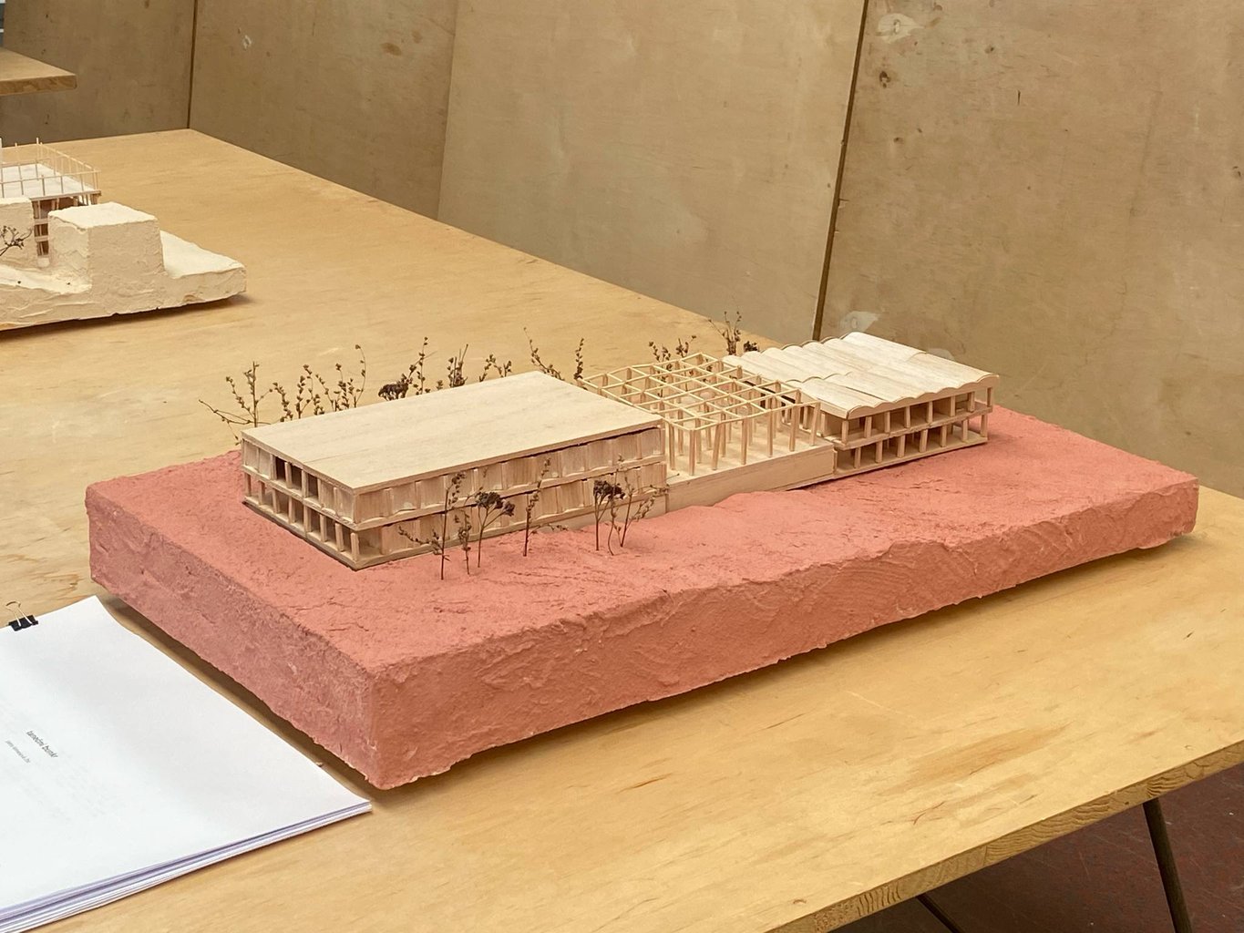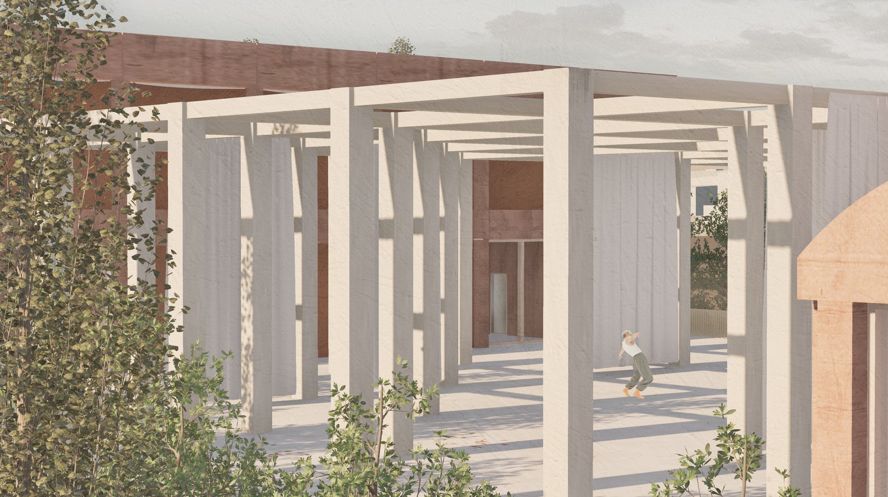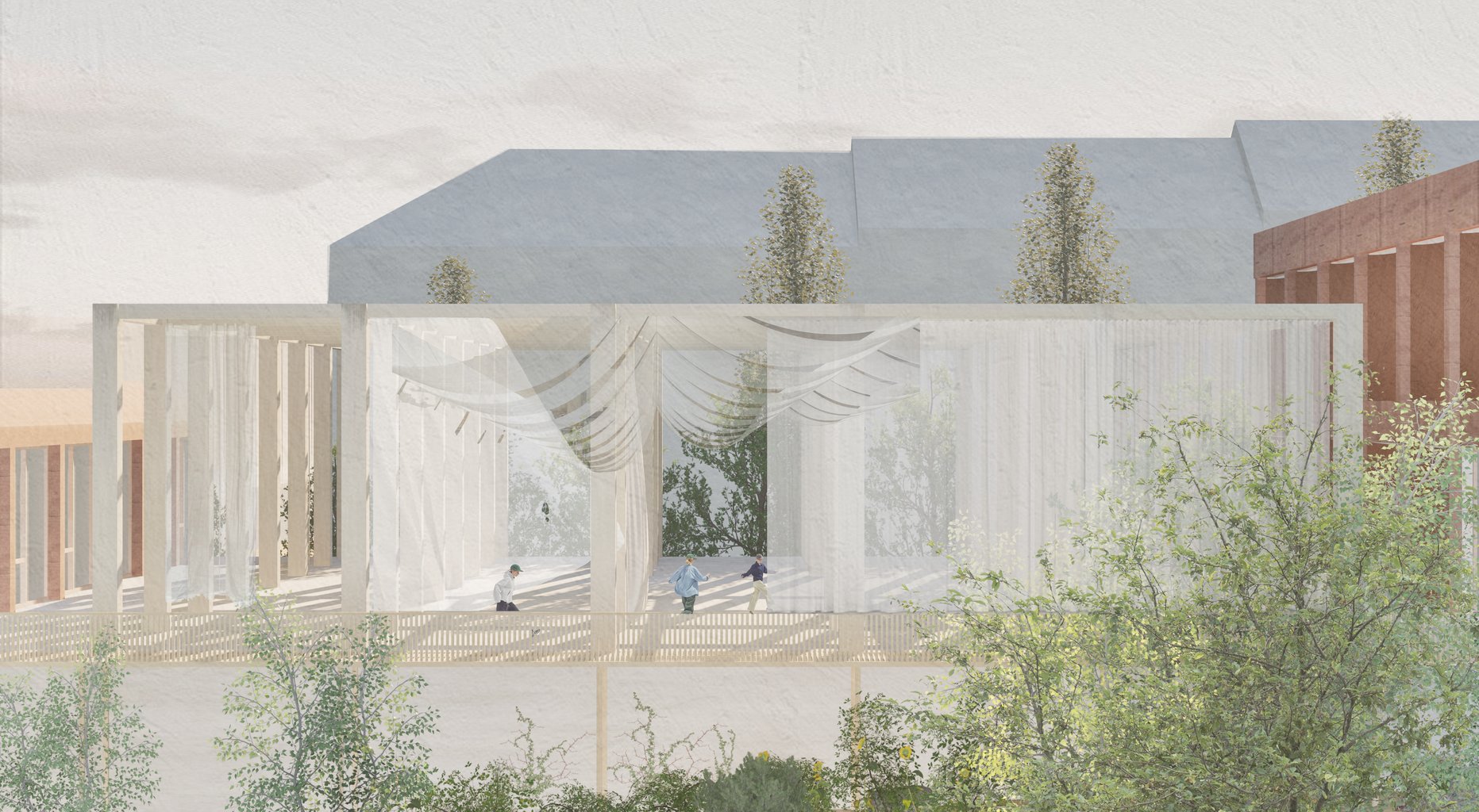 Zvolená prohlubeň se stává základem konceptu – místem, které nabízí možnost úniku od každodenního ruchu města. Díky svému zapuštění pod úroveň okolního terénu vytváří přirozeně izolovaný prostor, jenž vybízí k jinému způsobu vnímání. Architektonicky je tento moment využit jako nástroj pro vytvoření atmosféry odstupu a ponoření – prostor se otevírá dovnitř, nikoli navenek. Navržený objekt tak není pouze formálním zásahem do pozemku, ale přímou reakcí na specifickou topografii, paměť místa a jeho proměnlivou identitu. Využití původní jámy nepředstavuje jen recyklaci materiální struktury, ale také reinterpretaci historické vrstvy prostřednictvím soudobé architektury.