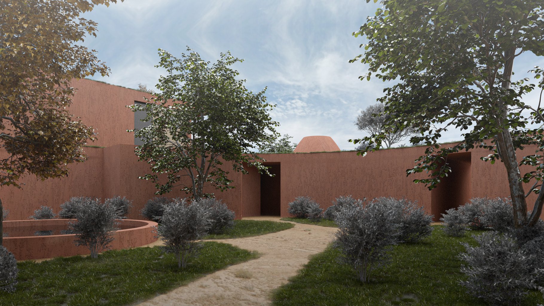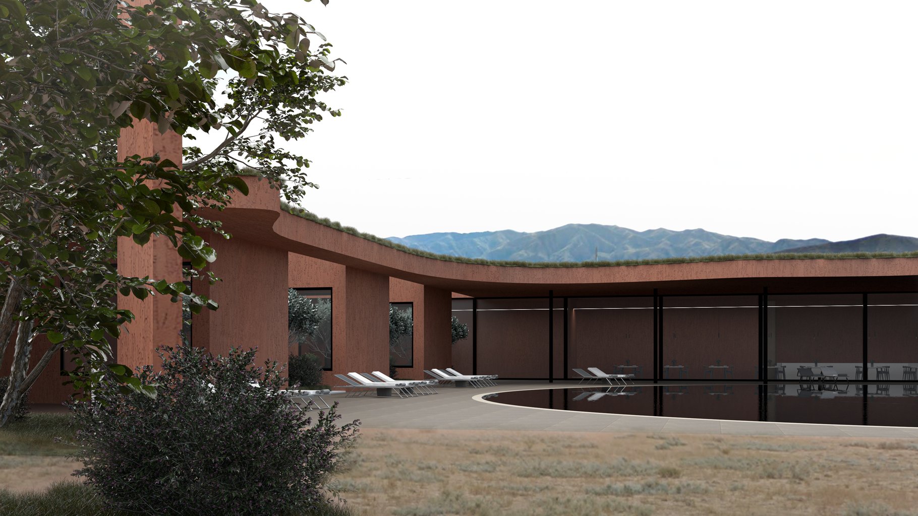 Na jižním břehu jezera Issyk-Kul, kde se střetávají voda a vítr, vzniká projekt termálních ozdravovacích lázní – prostor zastavení, návratu k přirozenosti a tichému rozhovoru mezi člověkem a krajinou. Zásah do prostředí je vědomě výtvarný. Architektonická forma není neviditelná, ale přichází jako partner – kontrastní a zároveň naslouchající. Tvar a hmota objektu vstupují do dialogu s horizonty hor, se strukturou země, s pohybem světla nad vodou. Architektura zde nepřikrývá krajinu, ale obrací se k ní – hledá kontakt, rytmus, soulad i napětí. Barevnost stavby čerpá z palety okolních geologických útvarů: rudé vrstvení Mars Canyonu, hnědavé svahy Žeti Oguz, prašné odstíny okolních hor. Materiály jsou hrubé, stárnoucí s důstojností – kámen, hlína, sušená sláma, bronz. Jejich zemitost dává kontrastu přirozený základ a zároveň podporuje senzorickou blízkost. Středobodem celého místa je voda – termální prameny s vysokým obsahem minerálů, vyvěrající z hlubin země. Jejich léčivé účinky jsou dlouhodobě známé: síra a sodík ulevují pohybovému aparátu, minerální složky regenerují pokožku, přírodní teplo uvolňuje svalstvo i mysl. V kombinaci s vysokohorským klimatem, suchým vzduchem a klidem jezera vytvářejí ideální podmínky pro ozdravení v hlubším smyslu – nejen tělesném, ale i vnitřním. Lázně nejsou pasivním pozorovatelem, ale součástí krajinného dění – tepelný rytmus, proudění vzduchu, stíny, sezónní proměny se odrážejí v jejich provozu i formě. Prostor lázní je rozčleněn do klidových zón, koupelových prostor, rozjímacích míst a skrytých výhledů – s důrazem na individuální vnímání a respekt k soukromí. Projekt vnímá architekturu jako médium kontaktu – mezi člověkem a krajinou, mezi tělem a duchem, mezi tichem a vnitřním pohybem. Jde o prostor pro návrat ke zdraví, rovnováze a tichému bytí.