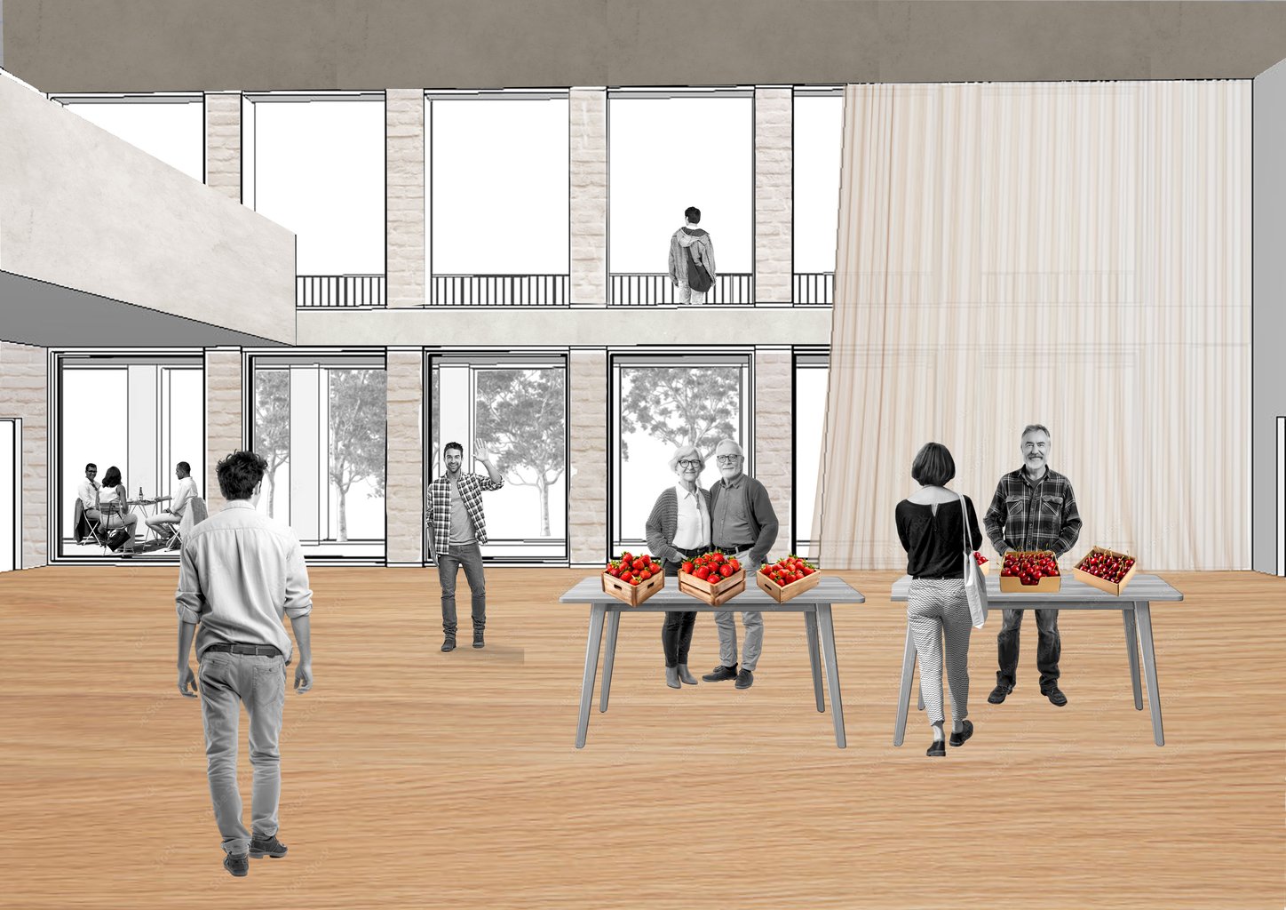 propojení s veřejným prostorem a láká kolem