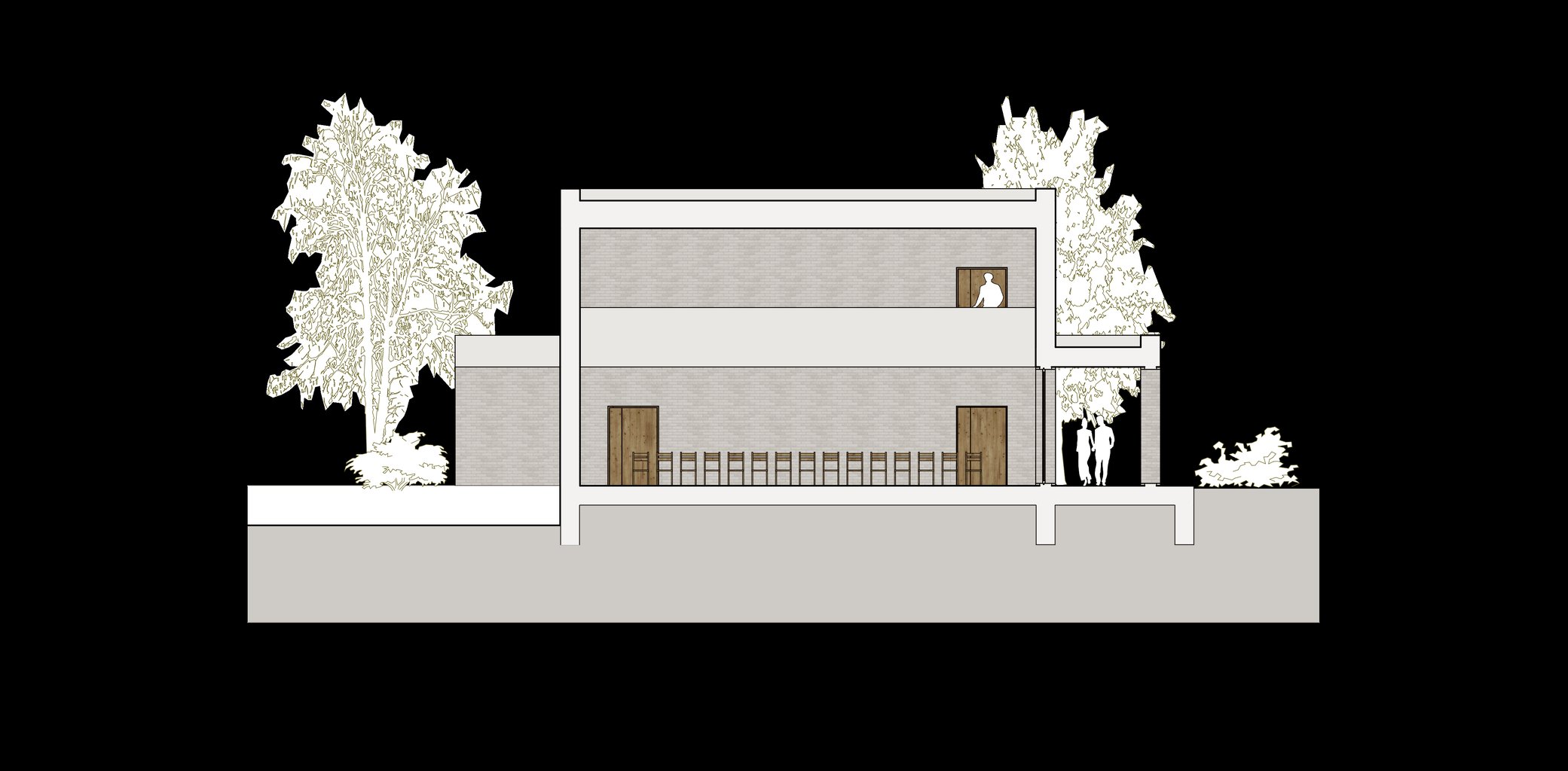 prvky vytvářejí prostor, kde se lidé cítí