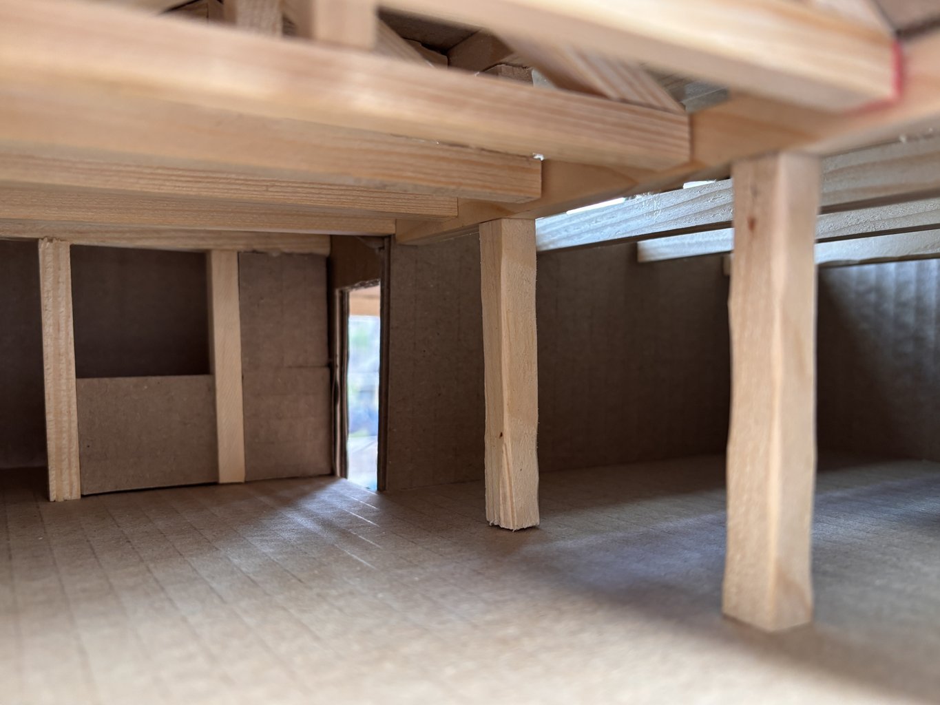 Ve své formě stavba hledá inspiraci v samotné kolonii. Inspiruje se jednoduchostí a neformálností její architektury. Půdorys tvaru písmene L přirozeně vytváří dvě osy prostoru podél kterých jsou orientovány jeho dvě hlavní funkce - výčep a sál. Za pomoci různé orientace krovu, jeho rytmu, objemu jeho konstrukce a prosvětlení jednotlivých prostorů pod i nad ním je dosaženo oddělení charakterů těchto prostorů, zatímco zůstávají nečleněné a provázané. Jejich členění oddělení naznačují dva objemné sloupy, který samotný krov ukotvují. Těžký, temný a snížený charakter samotného celku navazuje na usedlý charakter osady a staví se oproti rozlehlému nebi nad ní. Vychází z pojetí výčepu a sálu jakožto zá-zemí