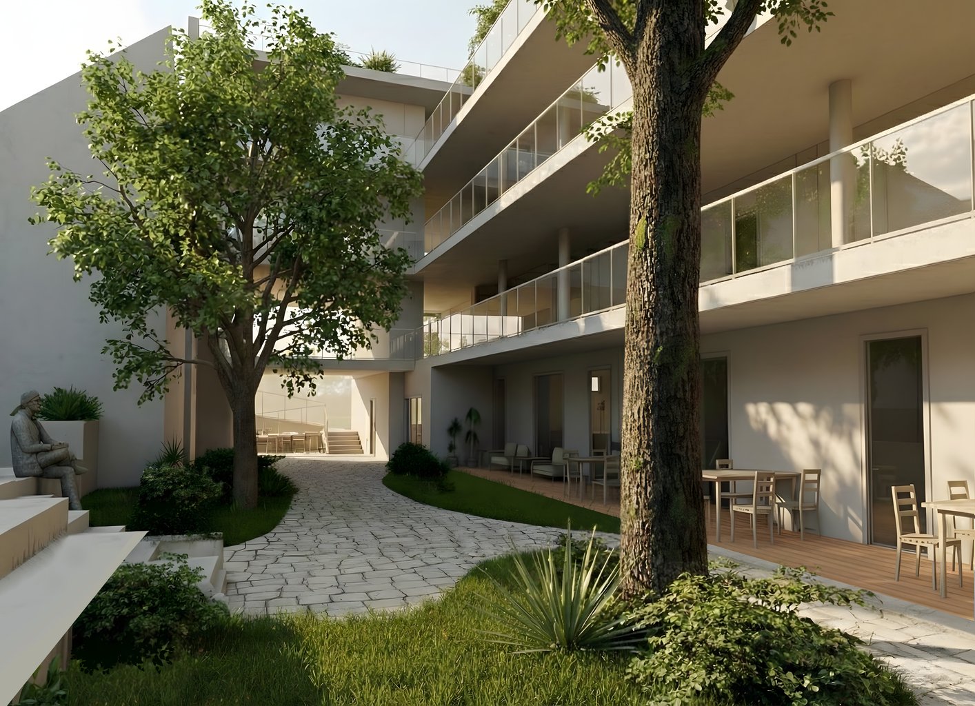 Klíčovým prvkem návrhu je biofilní design a práce se zelení, která zjemňuje tvrdé struktury fasády a vytváří „psychologický most“ mezi technickou stavbou a pocitem domova. Zeleň zlidšťuje měřítko objektu a zvyšuje komfort uživatelů i kolemjdoucích. Použití lokálních a dostupných materiálů, jako je beton, dřevo a sklo, podtrhuje filozofii dostupného bydlení. RADIX tak netvoří jen místo k přespání, ale živý prostor, kde se interiér čitelný zvenčí stává lákadlem pro novou generaci obyvatel, připravenou oživit městské centrum.