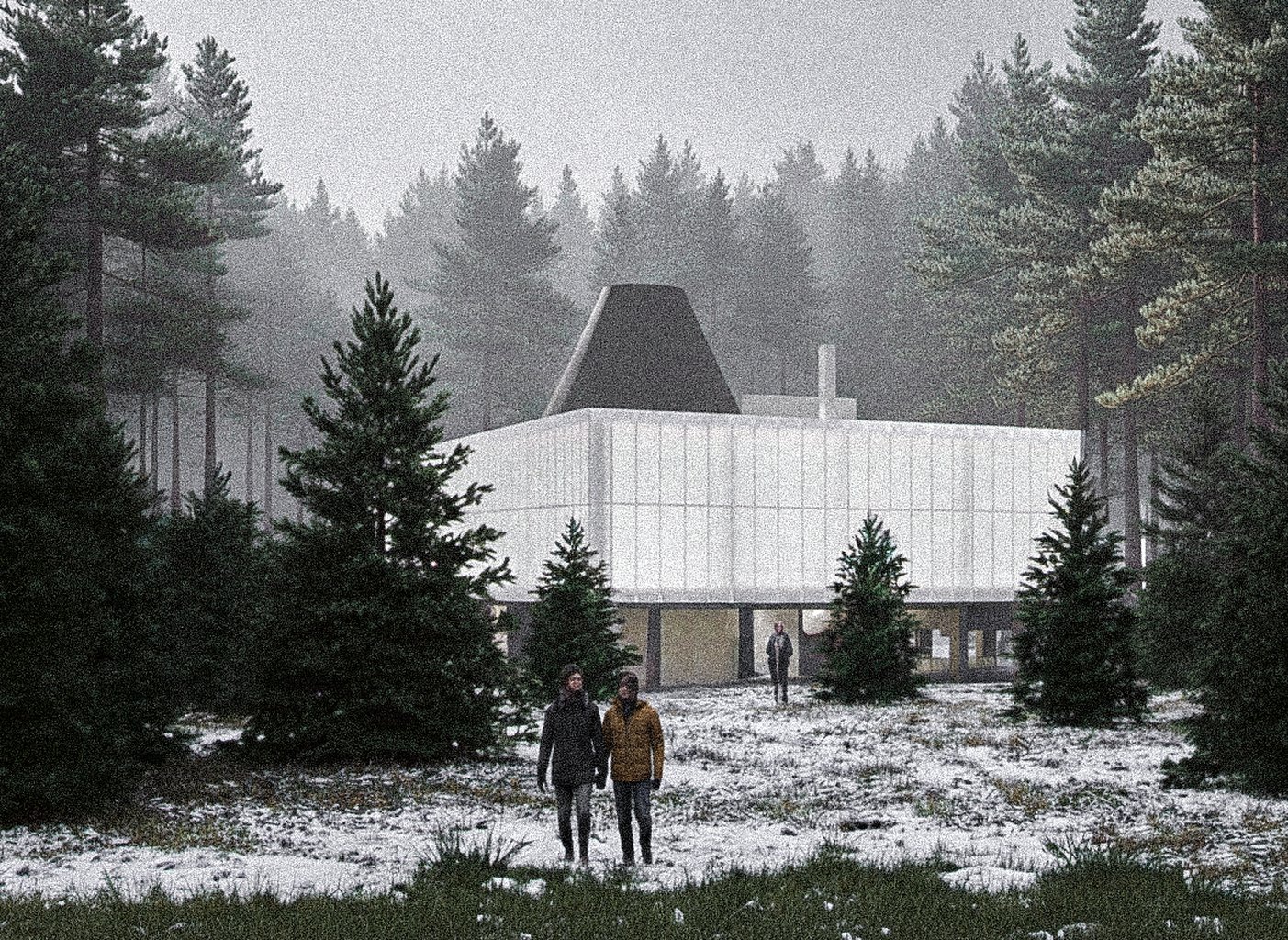 Prostorový pohyb v objektu zrcadlí osud horníka: sestup do temnoty za poznáním a následný výstup k očistě. Architektura zde uzavírá cyklus duchovní proměny – země, kdysi zraněná těžbou, nyní skrze tyto „rány“ vydává léčivou vodu. Ruina se stává společným jazykem krajiny a člověka; místem, kde se minulost potkává s přítomností a přírodou, která si bere území zpět.