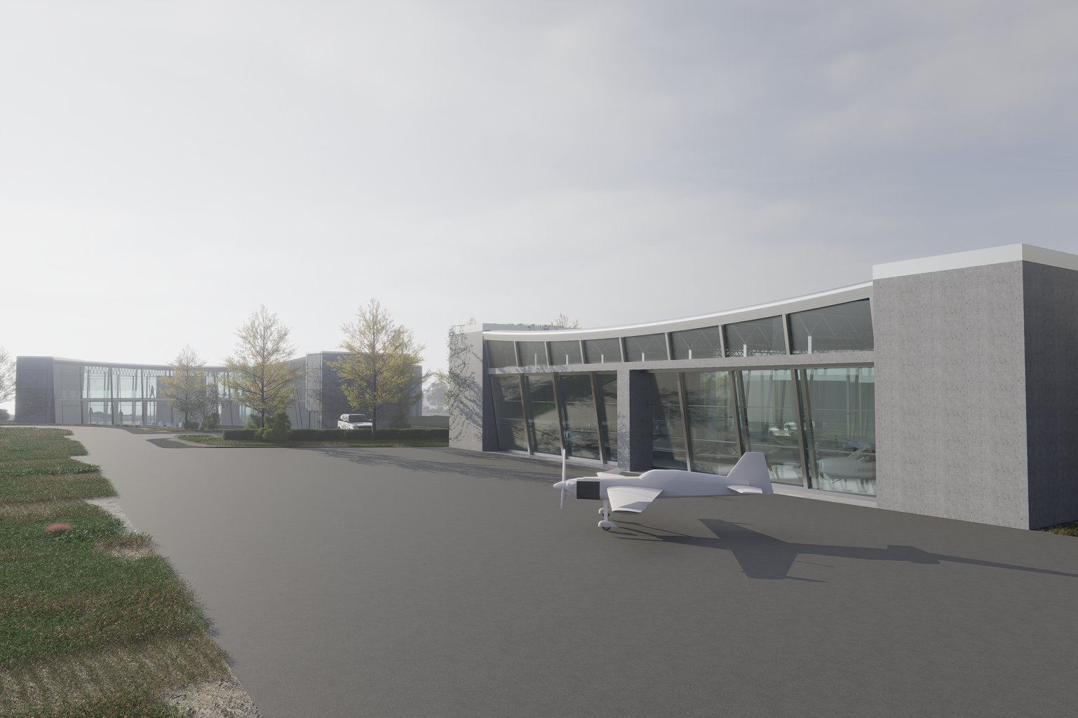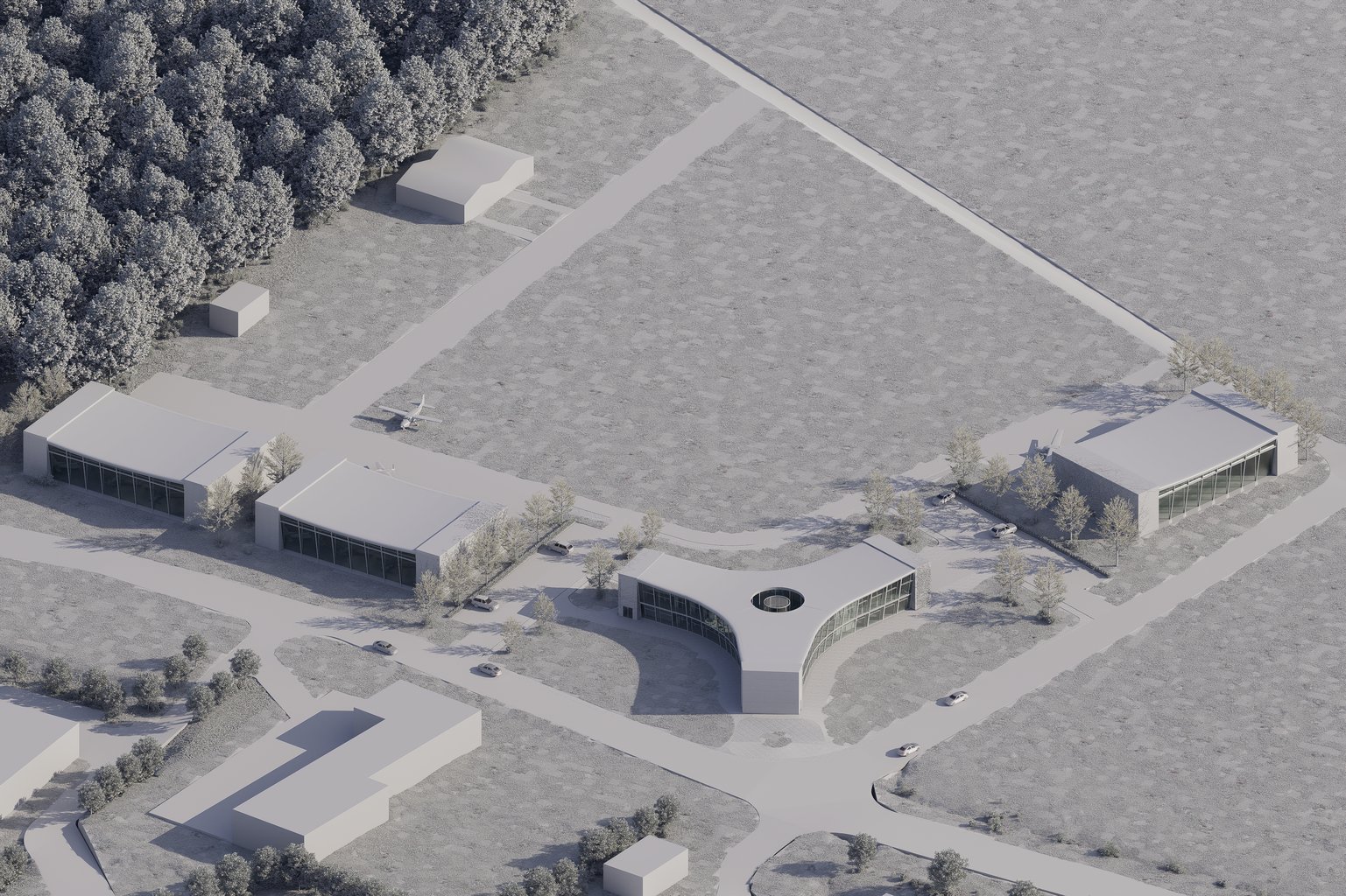 V projektu se věnuji návrhu nového komunitního domu a hangárů pro Liberecký aeroklub, urbanistické řešení pozemku, sjednocení designu, návaznost na širší vztahy, zapojení RE-USE možností z Libereckého kraje. Dům zajišťuje kancelářské prostory pro stávající / vedoucí členy aeroklubu, čisté sklady, výukovou část pro letecké kurzy, větrný tunel, veřejnou část s kavárnou / menší restaurací a muzejním prostorem pro historii aeroklubu, jeho milníků a úspěchů. Projekt by měl přilákat nové návštěvníky / potenciální členy aeroklubu, ať už z důvodu, jeho umístění vedle rozvíjející se obchodní oblasti, nebo kvůli veřejné / komerční části objektu. Aeroklub s bohatou historii dnes působí jako rozdělené celky v plechových halách s neudržovanými komunikacemi (viz foto), nedostatečným prostorem a uzavřením od okolí.