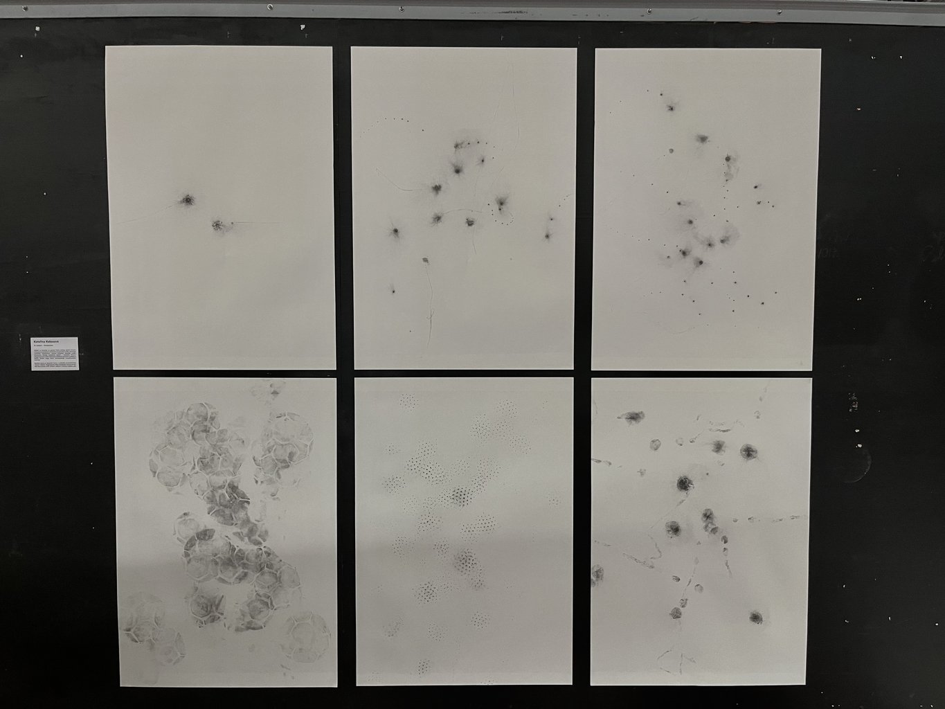 Součástí práce je zkoumání textur a materiálů prostřednictvím různých objektů.