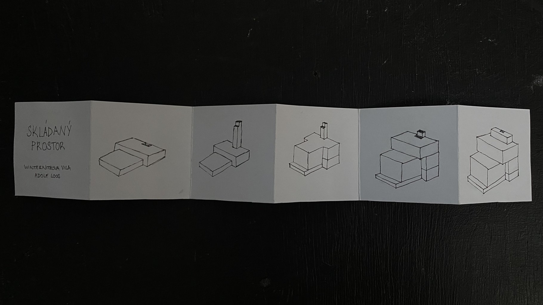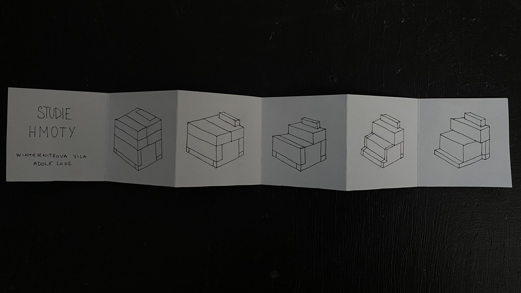 Architektura Winternitzovy vily od Adolfa Loose zredukovaná na to nejpodstatnější. Výsledkem práce jsou dva interaktivní sádrové modely v měřítku 1:50, které demonstrují dva principy - odhmotňování stavby a skládaný prostor.