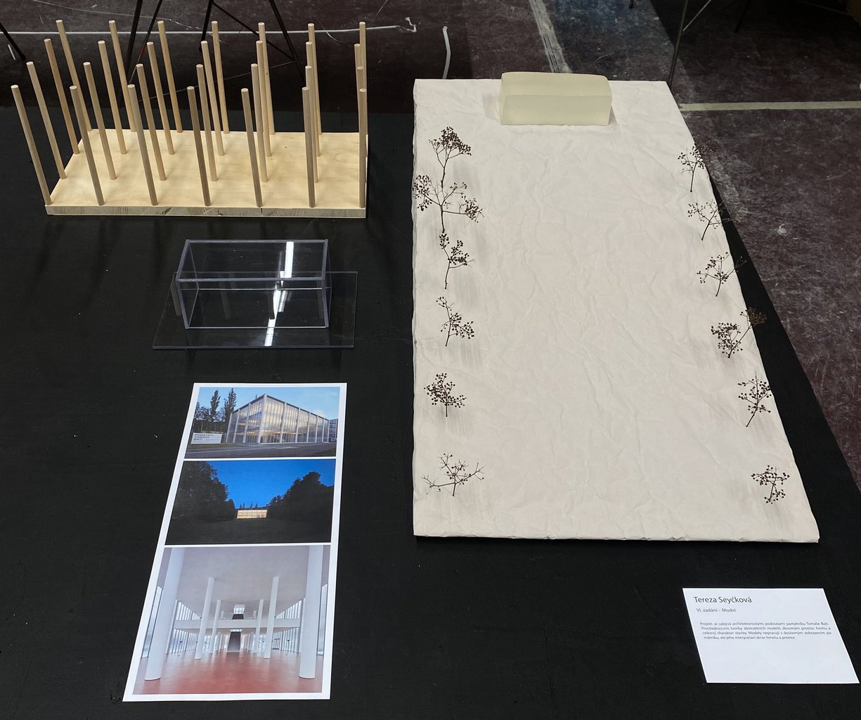 Projekt se zabývá architektonickými podstatami Památníku Tomáše Bati. Prostřednictvím tvorby abstraktních modelů zkoumám prostor, formu a celkový charakter stavby. Modely nepracují s doslovným zobrazením památníku, ale jeho interpretací skrze hmotu a prostor.