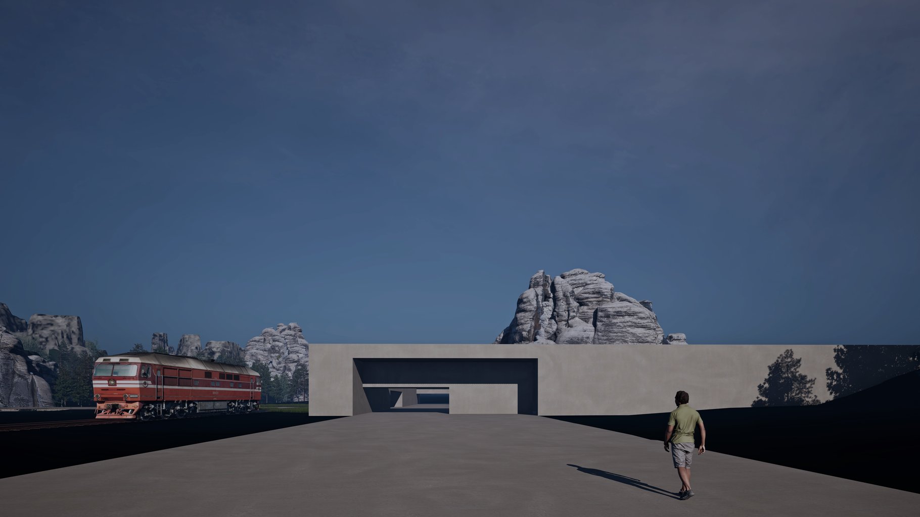 Návrh počítá s novým parkovacím domem na východ od navrhované budovy. Celý komplex má dvě hlavní funkce: odbavení návštěvníka