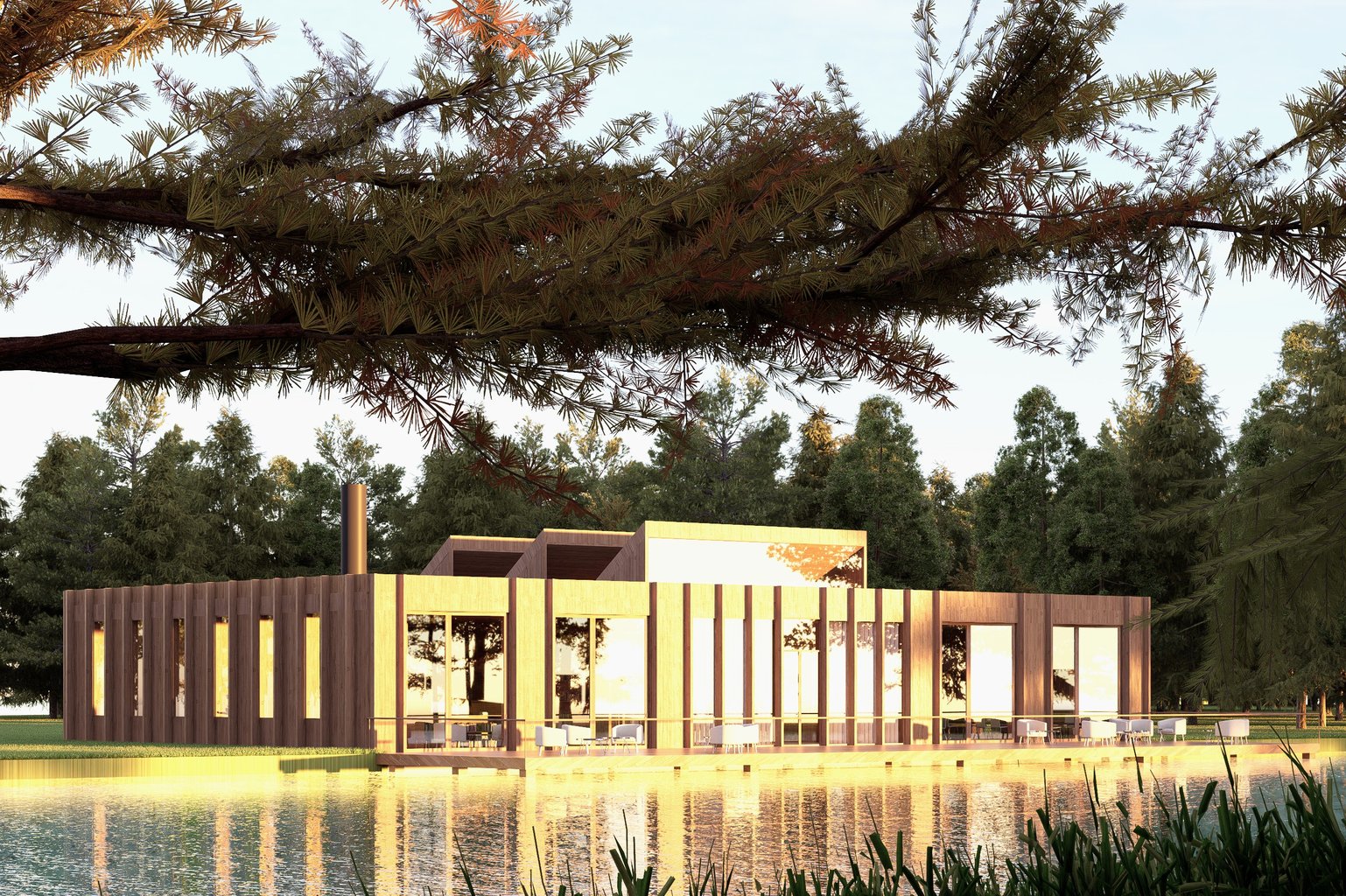 se dají plně otevřít a rozšířit pobytovou plochu o molo, které poskytuje výhled na zmiňované centrální jezero.
