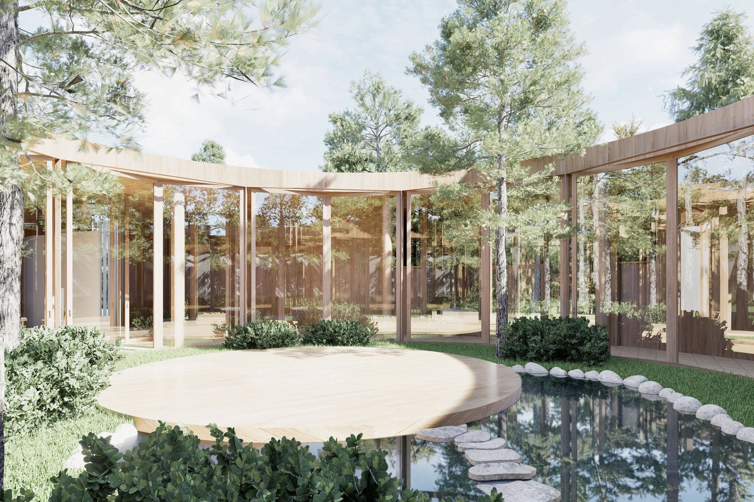 Toto místo poskytuje jak pavilony pro regeneraci, tak bydlení v podobě tiny houses. Pobytové domky jsou rozmístěny po ostrově