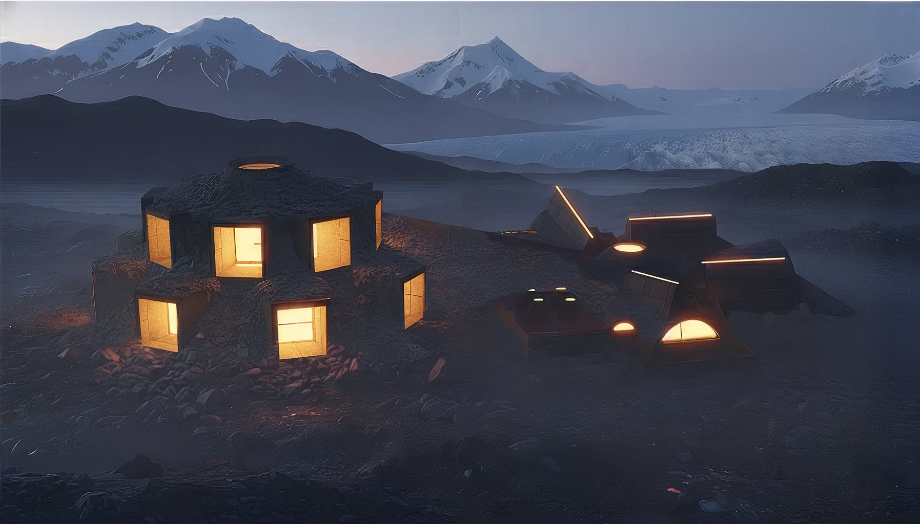 PROJEKT SI KLADE ZA CÍL ZAČLENIT STAVBU EDUKAČNĚ VÝZKUMNÉ STANICE DO CHARAKTERU SVÉHO OKOLÍ. STAVBA SE NACHÁZÍ NA PATĚ LEDOVCOVÉ MORÉNY, ODKUD POSKYTUJE STUDENTŮM A VÝZKUMNÍKŮM JEDNODUCHÝ PŘÍSTUP K LEDOVCI. STAVBA JE KOMPLETNĚ ZHOTOVENA Z LOKÁLNÍCH MATERIÁLŮ, ČÍMŽ UKAZUJE SMĚR, KUDY BY SE MOHLA UBÍRAT BUDOUCÍ VÝSTAVBA. SVOU NÁPLNÍ POMÁHÁ EDUKOVAT STUDENTY O ENVIROMENTÁLNÍ PROBLEMATICE. STAVBA SE SKLÁDÁ Z DVOU HMOT PROPOJENÝCH SESTUPNÝM SCHODIŠTĚM. HMOTA HVĚZDICOVÉHO TVARU (-1-) JE OBYTNÁ ČÁST STAVBY. TATO ČÁST SE NACHÁZÍ NAD POVRCHEM MORÉNY, DÍKY SVÉMU TVARU, DOSTÁVÁ SLUNEČNÍ SVIT PRŮBĚHEM DNE ZE VŠECH STRAN. DRUHÁ ČÁST OBJEKTU (-2-) SE NACHÁZÍ POD ÚROVNÍ TERÉNU. DÍKY STROPNÍM SVĚTLÍKŮM , SE DO OBJEKTU DOSTÁVÁ DOSTATEK SVĚTLA, OVŠEM UŽIVATELÉ NEJSOU ROZPTÝLENI DĚJI V OKOLÍ BUDOVY. STŘEŠNÍ KRAJINA VÝZKUMNÉ ČÁSTI JE VYUŽITA PRO OCHOZY, KDE SE NACHÁZEJÍ MISTA K ODPOČINKU. CELÝ KONCEPT JE ZALOŽEN NA PRÁCI S HMOTOU A SVĚTLEM. CÍLEM STAVBY JE PŘIBLÍŽIT ČLOVĚKU JEHO PROPOJENÍ S PŘÍRODOU SKRZ MATERIÁLOVÉ A PROSTOROVÉ ZÁŽITKY.