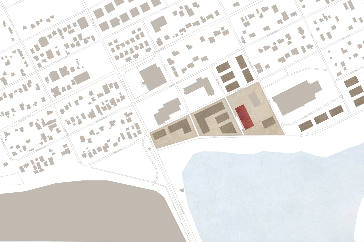 centrálně umístěný malý lokální obchod a severní část objektu je vyhrazena multifunkčnímu komunitnímu