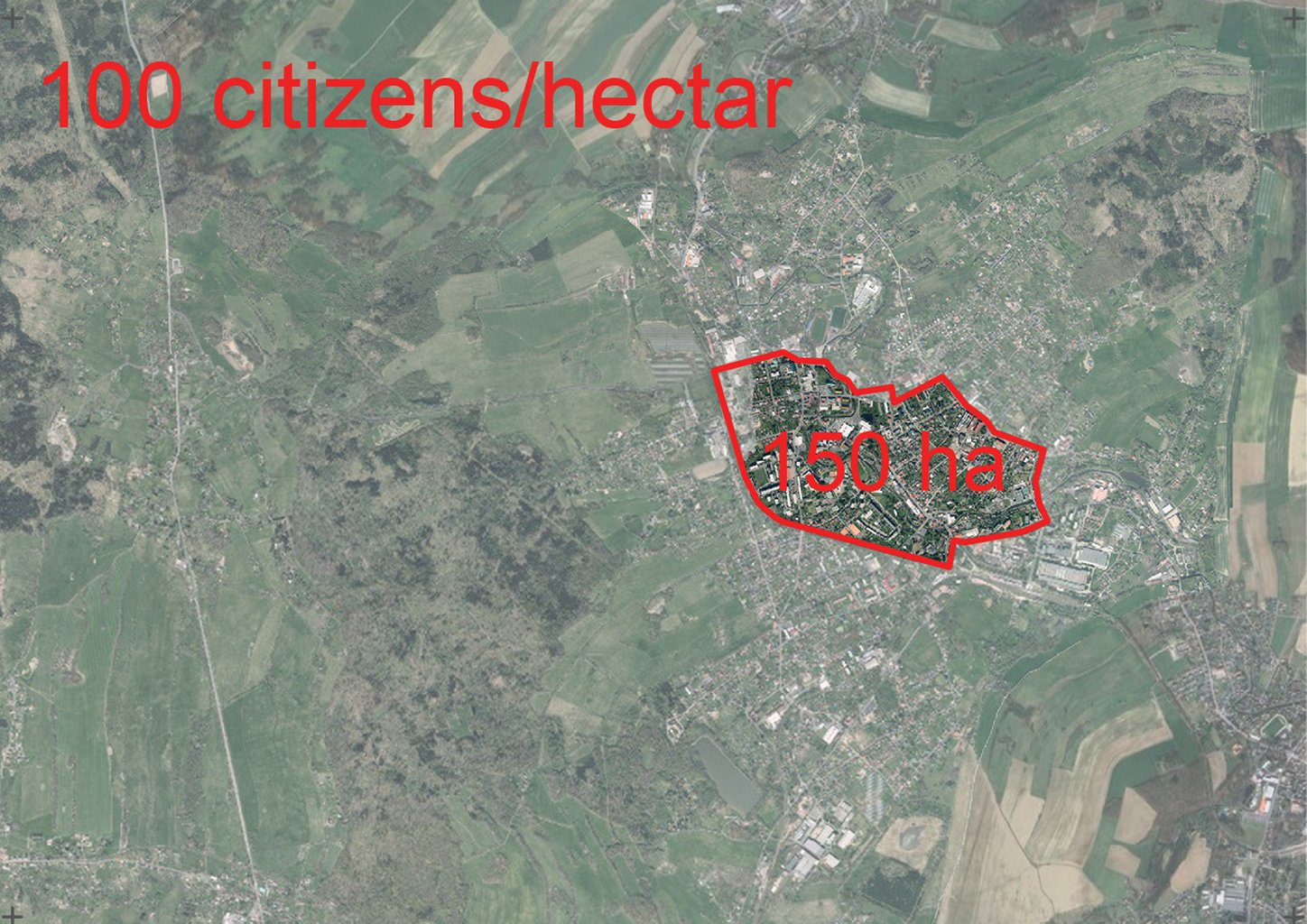 Ze semestru zaměřeném na zkoumání města Varnsdorf, jeho současné podoby, příčin, které k ní vedly a možností jeho rozvoje považuji za přínosné zamyšlení se nad kapacitou města, kterou by do budoucna měli začánat úvahy o jakémkoliv návrhu. Varnsdorf, vystavěn pro více než 22 000 obyvatel dnes se svými 15 000 stagnuje. Nová výstavba ve městě kde velká řada již postavených staveb postrádá využítí je nesmyslná. Tato práce se snaží zdůraznit závažnost míry nevyužívaného přebytku skrze hledání nových hranic města, uvnitř kterých by se samotný chod města konečně mohl stát udržitelným.