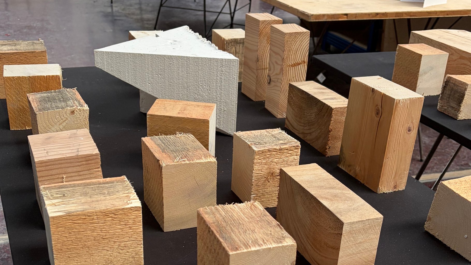 Na začátku práce jsem vycházela ze základních geometrických tvarů, které se postupně proměňovali v samotné formy. Každý tvar získal vlastní charakter a byl doplněn o detaily, jež naznačují jeho funkci a prostorové vztahy. Od samého začátku jsem se snažila o tom přemýšlet jako o architektonickém objektu. Po vylití forem sádrou vznikly čtyři modely pomyslných budov. Každý model měl svůj charakter a zajímavý půdorys. Postupně jsem modelům přidělovala architektonický záměr. Následně jsem jednotlivým odlitkům dala kontext města, pomocí dřevěných kvádrů, které představují okolní zástavbu. Chtěla jsem dosáhnou spolupráce sádrového modelu a “jeho” města. Přibližné měřítko jsem naznačila pomocí velikostí kvádrů a šíře ulic. Ve své práci zkoumám vznik budov a jejich funkci v kontextu města.