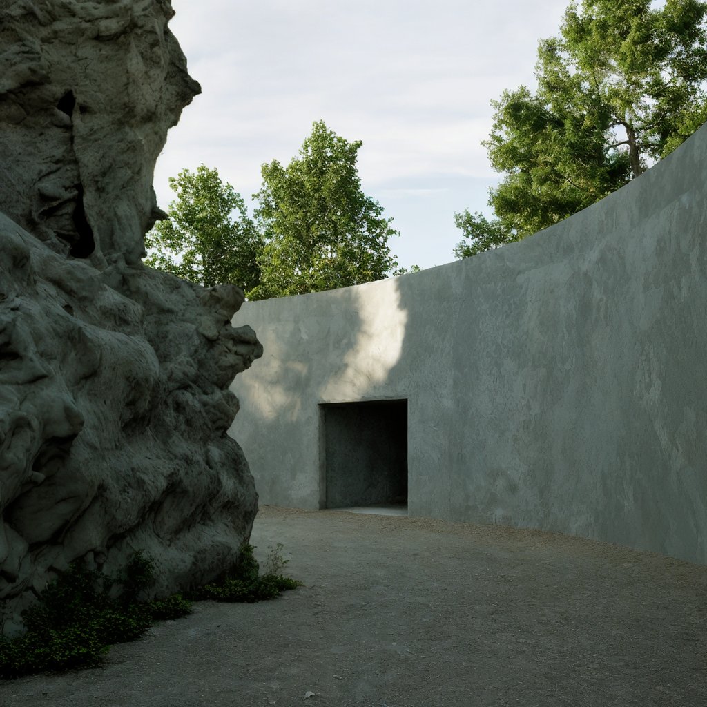 zázemí. Elipsovitá jáma okolo jedné ze skal pak slouží jako portál do