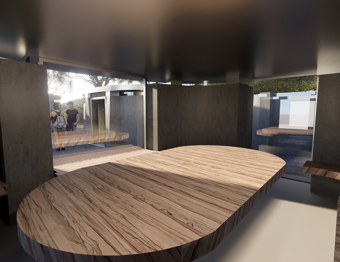 Základem návrhu je využití principu re-use a práce s celými stavebními segmenty. Studijní buňky vznikají z betonových skruží nepoužívaného komínu v Jablonci nad Jizerou, jejichž rozměry přibližně odpovídají rozměrům potřebným pro studium jednotlivců, či malých skupin. Cílem bylo pracovat s již existujícím materiálem a dát mu nový smysl a funkci.