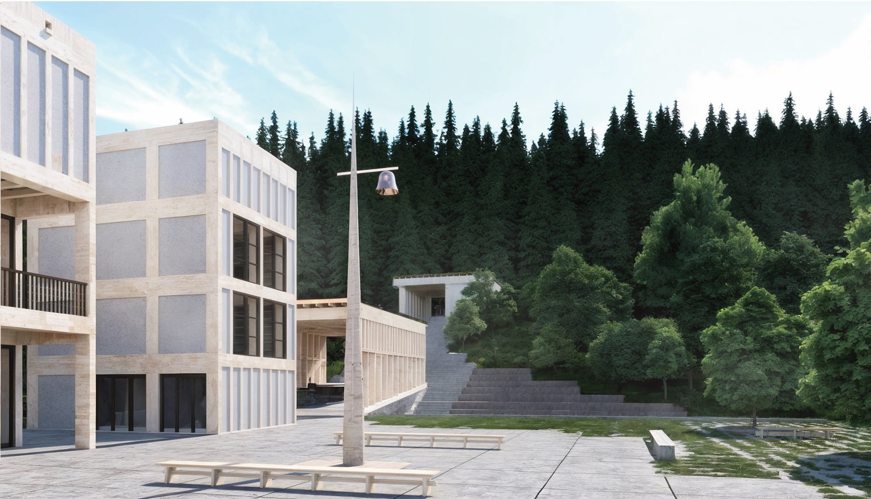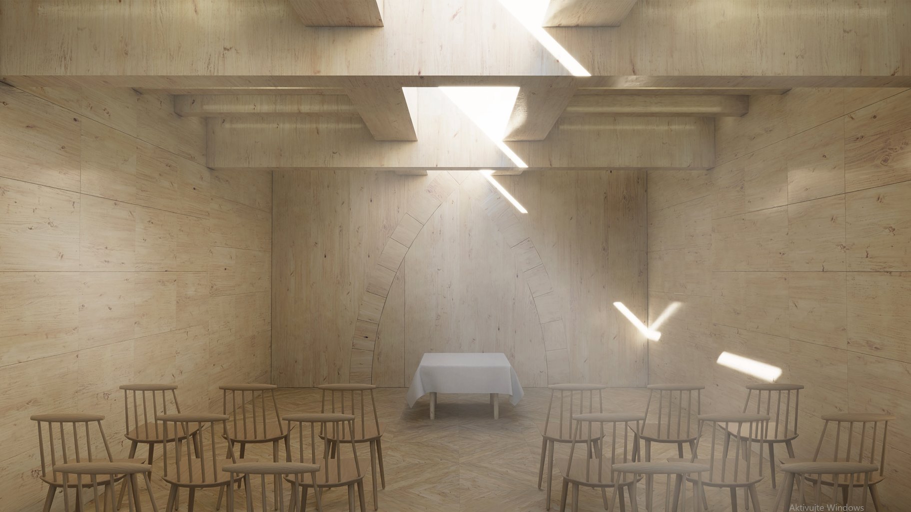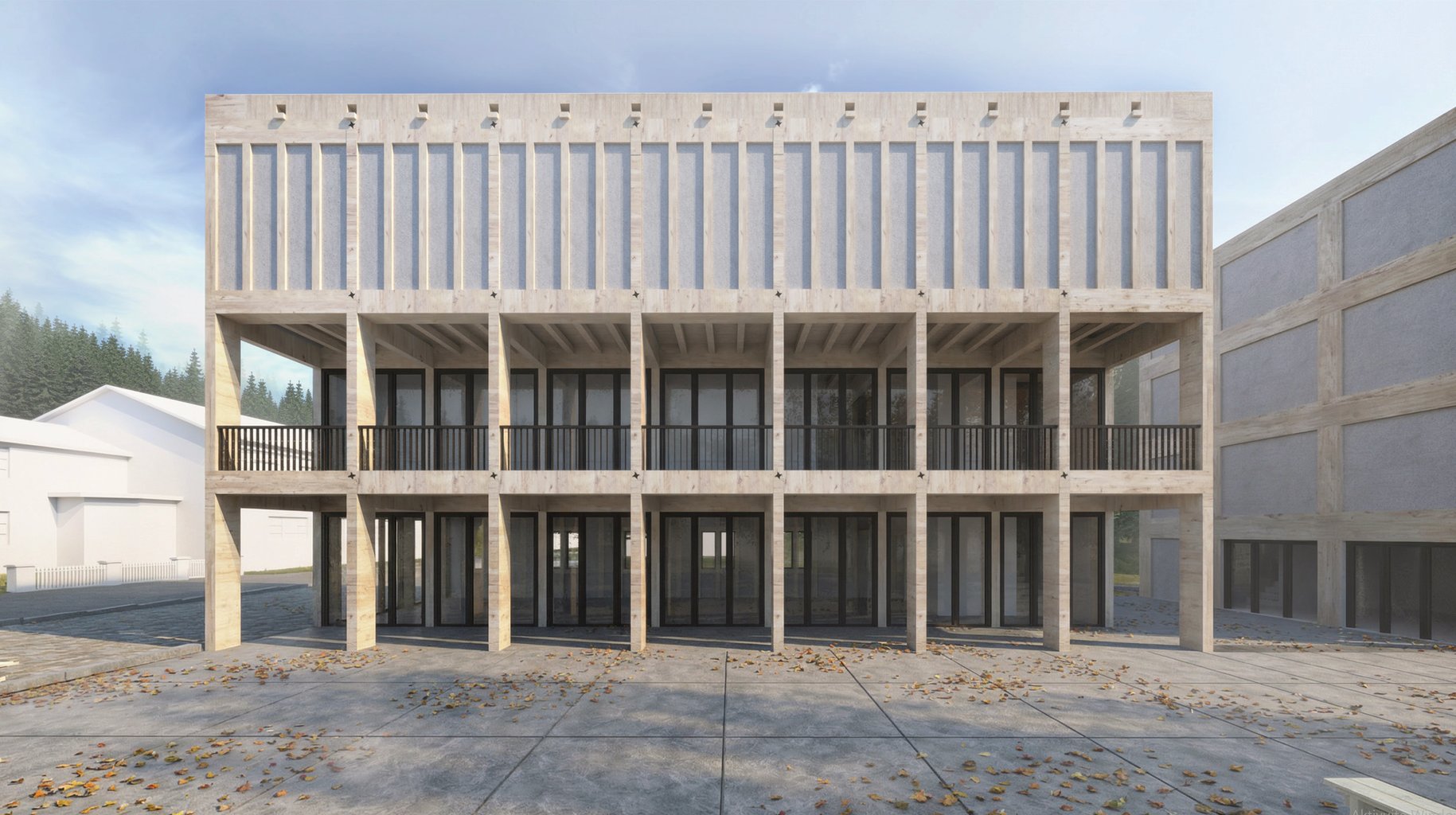 Návrh se skládá ze čtyř objektů, které stojí za sebou v jedné lince. Na návsi stojí obecní úřad s loubím a logií přes celou fasádu domu, úřad tak komunikuje s reprezentativním před prostorem obecního úřadu. Vedle stojí štíhlá vysoká knihovna, které v interiéru dominuje světlík, který odhaluje solidní dřevěnou konstrukci. Prostor před knihovnou se stává intimnějším. Přes adršpašský potok vede konstrukce, která je využitelná jako hlediště a v kopci směrem k zastávce se nacházejí pobytové schody s výhledem na Pavlovskou horu. Na konci stojí jednoduchá stavba zastávky, která zpříjemní čekání na vlak.